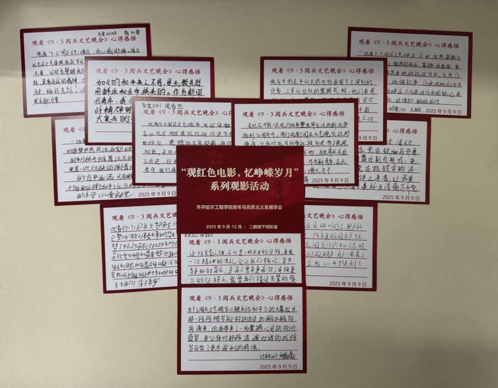 为让红色历史可触可感,让革命精神薪火相传,9月9日,由青马学会策划发起的“观红色电影,忆峥嵘岁月”系列观影活动在二号教学区观影室温情启幕。本次观看的影片为《9·3阅兵文艺晚会》,全校多名学生参与观影并写下自己的感受,共同回溯那段波澜壮阔的烽火岁月。