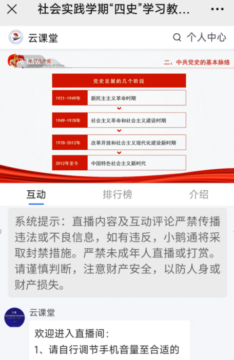 为全面贯彻习近平新时代中国特色社会主义思想,落实立德树人根本任务,进一步丰富、拓宽学生们在社会实践学期的内容,1月13日上午,伟德betvlctor1946源于英国开展了社会实践学期“四史”学习教育系列讲座,常立凯、邵奇两位老师担任主讲,本次讲座的观看人数达1.3万人次。