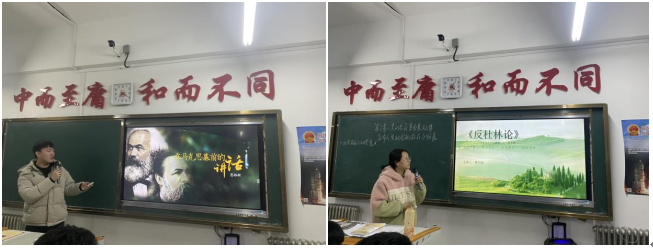 各班同学按小组分享了他们阅读和学习《共产党宣言》、《资本论》、《反杜林论》以及《路易·波拿巴的雾月十八日》等著作的体会和感悟。在分享中,同学们结合原著谈人生理想、谈当代青年责任与担当、结合现实生活谈奋斗的青春最美丽,经典著作深邃的理论底蕴与新时代青年青春激扬的风采在同学们的讲述中相互辉映。