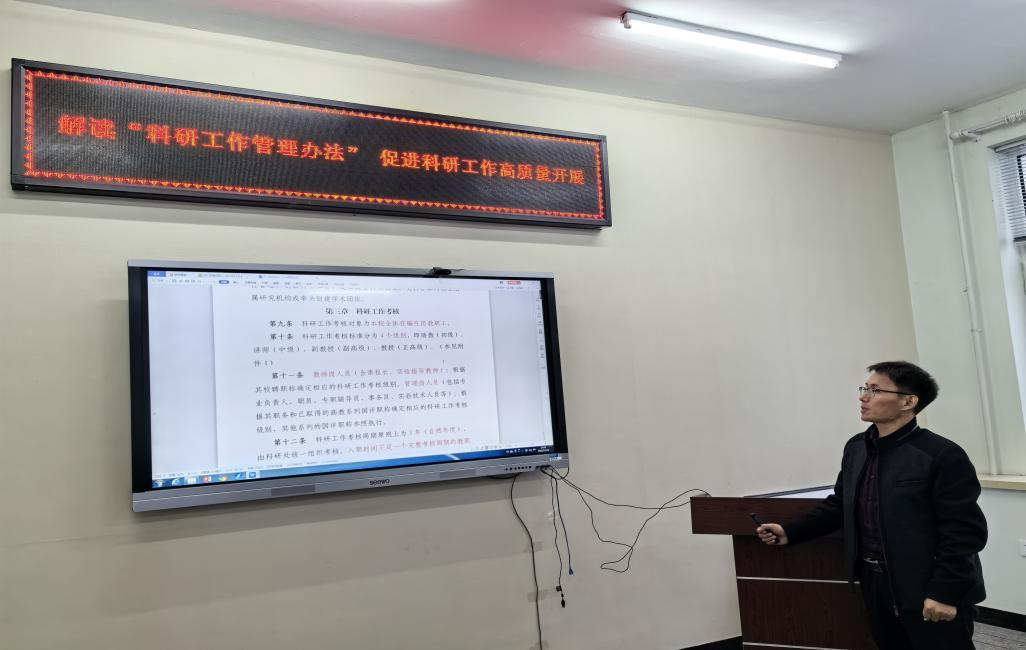 宋庆永老师主要以最新修订的《伟德国际victor1946科研工作管理办法》的文件内容进行详细讲解,帮助教师厘清科研统计、科研奖励、科研考核等相关内涵,又重点强调了在论文发表、各类各级课题申报与界定、科研经费管理、科研考核细则等几大方面的注意事项,并强调各位老师一定要以诚实守信、严谨细致的态度对待每一项科研工作。
