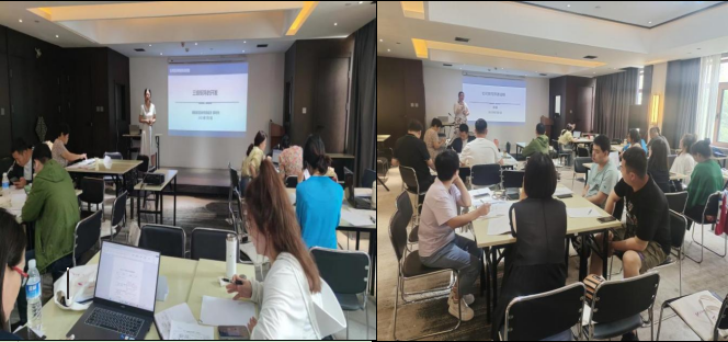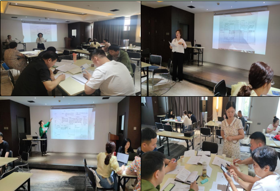 在接下来的两天线下培训过程中,讲师团队成员郭玲玲老师分级精讲矩阵图法;李娜老师具体讲解开课说明的作用及构成以及思政课教学改革经验介绍。