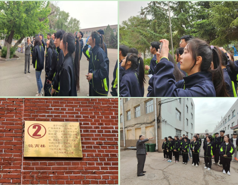 许长艳带领师生参观校园,回顾学校30余年的办学历程,并讲解了标志性建筑的背景和深远价值,使大家通过对老校区的了解,体悟校园文化,懂得艰苦奋斗的意义。
