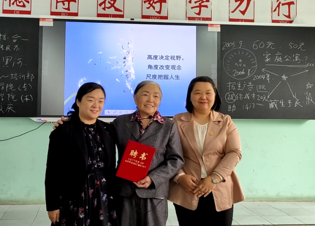 最后,思政教学部主任赵婷婷、副主任李娜聘请许长艳为“思政课特聘教授”,并颁发了聘书。