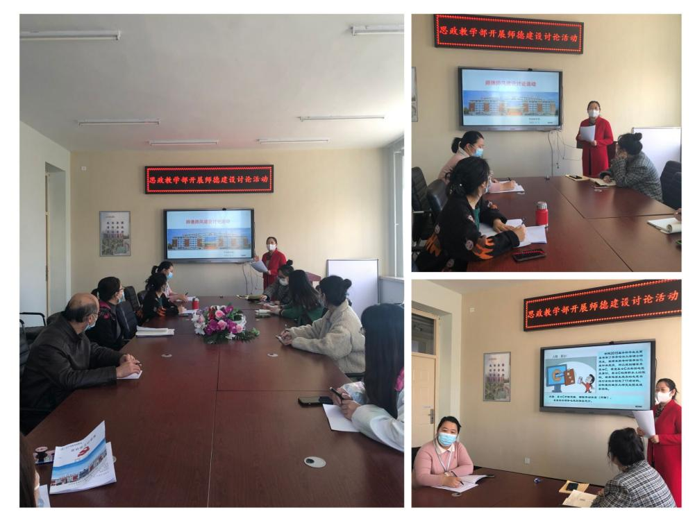 为进一步推进师德师风建设工作,提高教师的思想政治素质和职业道德修养,11月3日,思政教学部教师在三教1211会议室,进行师德师风建设讨论活动。