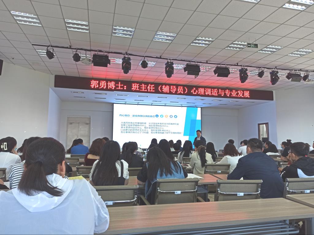 2022年6月8日,在2教2508思政部教师聆听了郭勇博士关于《班主任(辅导员)心理调适与专业发展》的培训,其培训内容充实,受益匪浅。