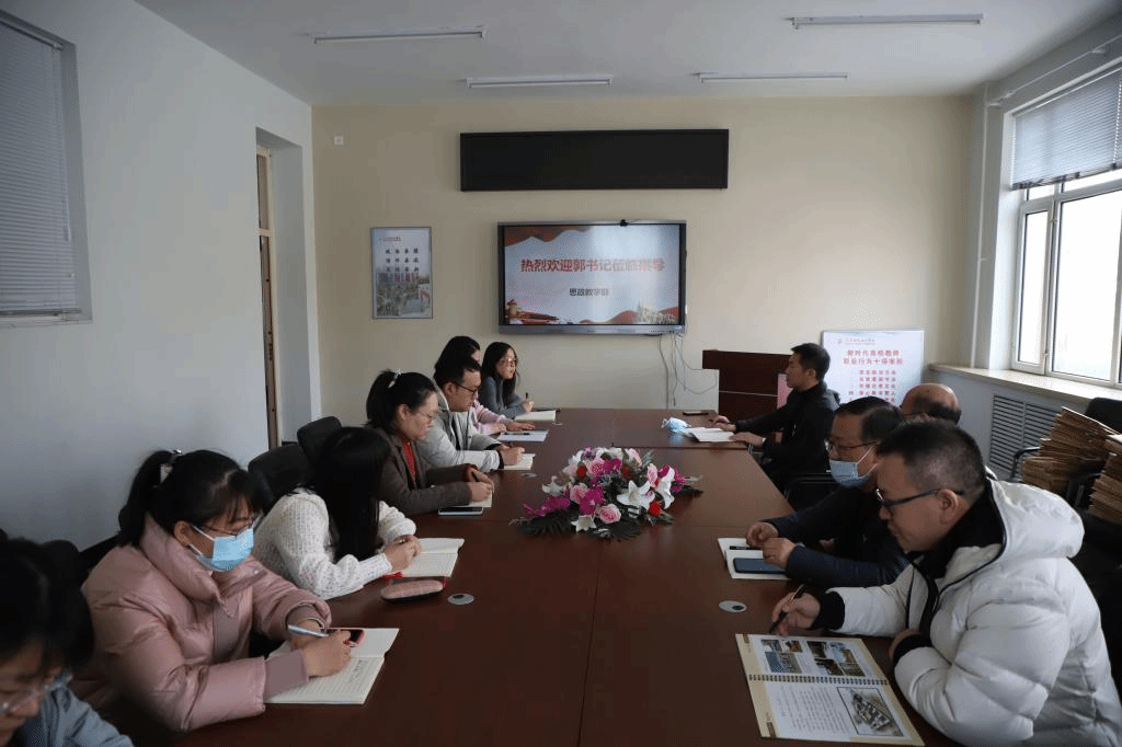 为进一步落实学校教育教学改革理念,上好新学期开学第一课,2月28日上午,学校党委书记郭伟东深入思政教学部开展交流座谈并指导新学期工作,思政教学部负责人赵婷婷主持本次座谈,思政教学部全体教师参会。
