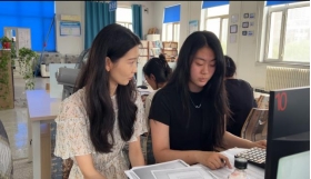 图1 许洪波老师和梁佳梅老师了解学生实践内容
