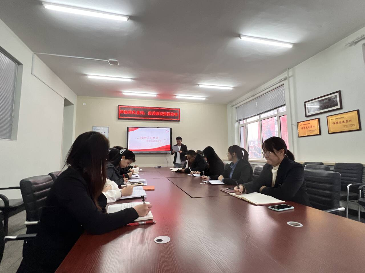 赵婷婷院长带领全体教职工认真学习《习近平总书记关于教育的重要论述》,丁琪老师组织全体教师观看以毛泽东主席在第一师范游学、调研历程为内容的重大革命历史题材电影《出发》。赵婷婷强调,思想政治理论课是落实立德树人根本任务的关键课程,办好思想政治理论课关键在教师,师德师风直接关乎思政课教师队伍整体形象,要提高站位,深刻认识加强师德师风建设重要意义,要牢记为党育人、为国育才的初心使命,大力弘扬教育家精神,把师德师风建设摆在首位。