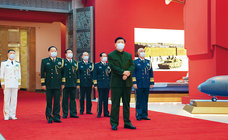 2022年7月27日,在庆祝中国人民解放军建军95周年之际,中共中央总书记、国家主席、中央军委主席习近平前往中国人民革命军事博物馆,参观“领航强军向复兴——新时代国防和军队建设成就展”。 新华社记者 李刚/摄