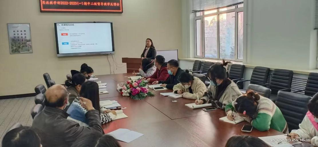 10月24日下午,思政教学部在3教1211会议室召开了期中二级督导教学反馈会。会议由教学副主任李娜主持、部门负责人赵婷婷及全体教师参加。