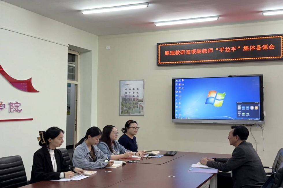 会议伊始,教研室主任赵立莹就本次集体备课会的核心目标、重要内容与具体流程进行了详细说明。王树松教授结合自身丰富教学经验,针对政治经济学部分展开重点讲解,从知识体系出发,系统拆解政治经济学中的核心重难点,不仅梳理了知识间的逻辑关系,还分享了过往教学中帮助学生理解抽象理论的实用案例,真正将思政课讲深、讲透、讲活。