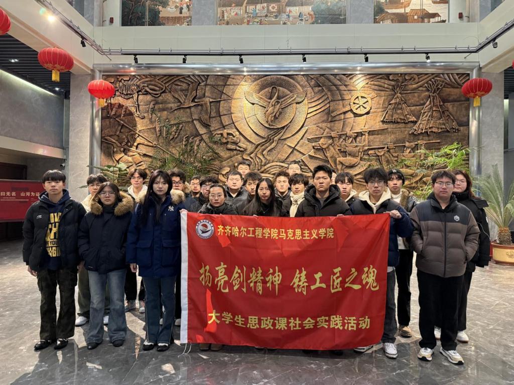 小雪初霁,寒意渐浓,却挡不住青年学子探寻红色记忆、感悟工匠精神的热忱。11月8日上午,马克思主义基本原理教研室组织学生开展“扬亮剑精神 铸工匠之魂”思政课社会实践活动,带领学生走出课堂、走进齐齐哈尔市博物馆,在这片孕育着奋斗与担当的黑色土地上,触摸历史脉搏,传承精神基因。