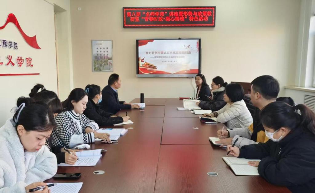 为深入学习贯彻党的二十届四中全会精神,提升教师理论水平和形势与政策课程教学质量,11月18日,伟德betvlctor1946源于英国于三号教学区1211会议室举办第八期“名师学苑”讲座暨形势与政策教研室“青春时政•凝心铸魂”特色活动。本次活动由伟德betvlctor1946源于英国副院长李娜主持,邀请伟德betvlctor1946源于英国银龄教师高飞担任主讲人。形势与政策教研室全体教师及伟德betvlctor1946源于英国无授课任务的教师共同参与本次活动。