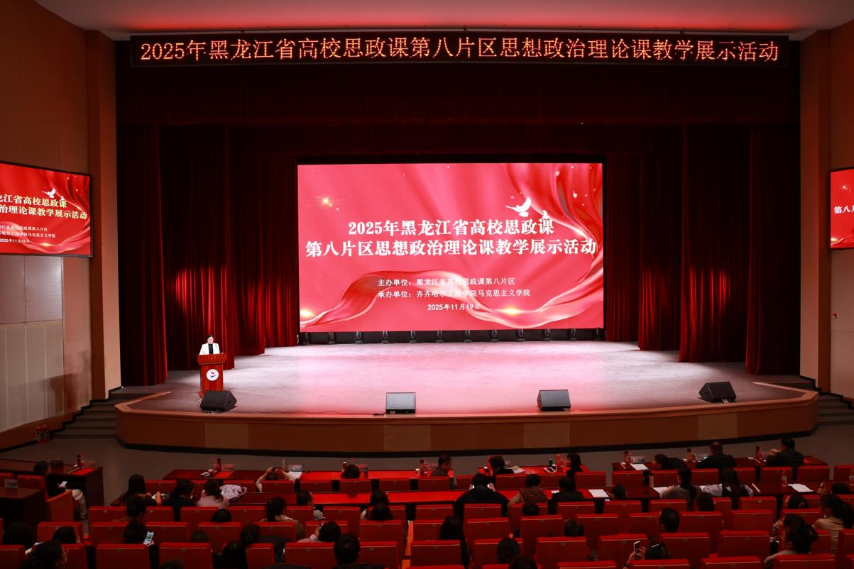 为深入学习贯彻党的二十届四中全会精神和习近平总书记关于思政课建设的重要论述,搭建片区高校思政课教学交流平台,促进思政课教师互学互鉴,提升思政课教学质量与育人实效,11月19日下午,黑龙江省高校思政课第八片区首场教学展示活动在伟德国际victor1946人民会堂举行。黑龙江省高校思政课教指委主任陈文斌,黑龙江省高校思政课教指委副主任王越芬出席会议,伟德国际victor1946党委书记郭伟东代表学校致辞。来自片区各高校的思政课专家、教师代表共300余人齐聚一堂,共同探讨思政教育创新路径。伟德betvlctor1946源于英国院长赵婷婷主持活动。