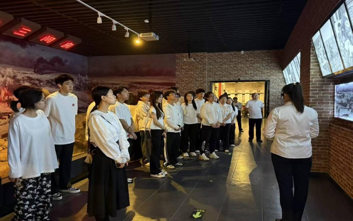 江桥纪念馆内,一件件历经战火的实物、一幅幅定格烽烟的图片、一幕幕逼真还原的场景,全景式再现了1931年马占山将军率部打响“中国武装抗日第一枪”的壮烈史实。在讲解员的引导下,师生们认真聆听江桥抗战中“以寡敌众、宁死不退”的英雄事迹:面对日军的飞机大炮,中国守军以步枪、马刀甚至血肉之躯构筑防线,连续击退敌军多次进攻,用生命诠释了越是艰险越向前的斗争意志。